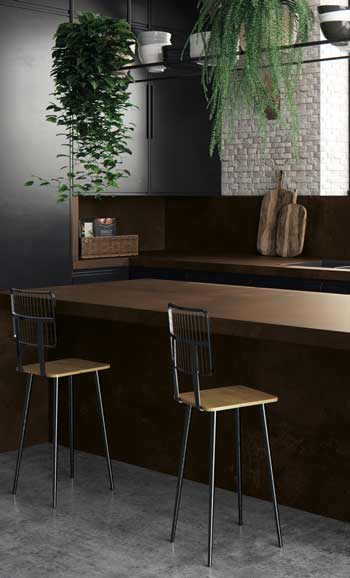A wide variety of single-thickness edge profiles can be created in Porcelain colours. These finishes expose the body of the slab, which differs in colour and design from the slab's surface.