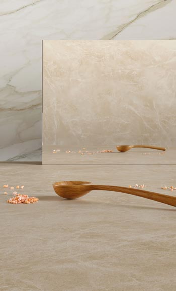 A wide variety of single-thickness edge profiles can be created in Porcelain colours. These finishes expose the body of the slab, which differs in colour and design from the slab's surface.