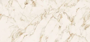 A warm creamy white surface featuring a movement of honey-brown mineral veins that resemble ancient brush strokes dedicated to immortalizing the passage of time. In a Matte finish.