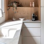 Nordic L-Shaped Kitchen with island in Caesarstone 580 Fume